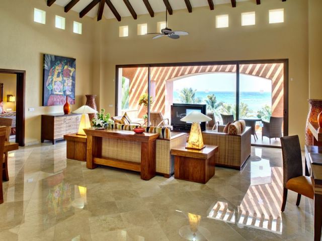 6 Family Junior Suites. Спальная комната с ванной комнатой, гардероб, гостиная с диваном отдельная комната с диваном, двумя односпальными кроватями и туалетом для гостей, две террасы, кофеварка и будильник, потолочный вентилятор, утюг и гладильная доска, сейф ($), 2 телевизора  с плоским экраном LCD, халаты и тапочки, напряжение 110 вольт.